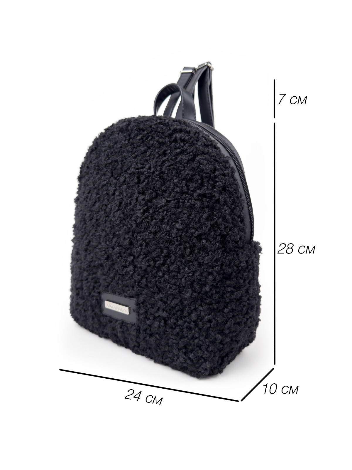 Зручний прогулянковий рюкзак. Родзинкою рюкзака є його приємна на дотик фактура, оскільки виконаний з м'якенького штучного хутра. Зовні на задній стінці розташована кишеня на блискавці. В середині має одне відділення та дві кишеньки одна з яких на блискавці. Плечові ремені регулюються, максимальна довжина 95 см.
