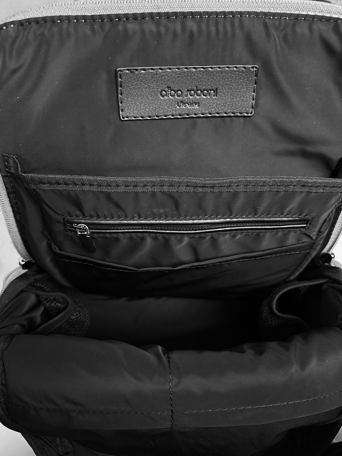 Зовні рюкзак має дві бокові кишені на магнітах, на задній стінці кишеня на блискавці для дрібних речей та вшита тасьма з карабіном для ключів.