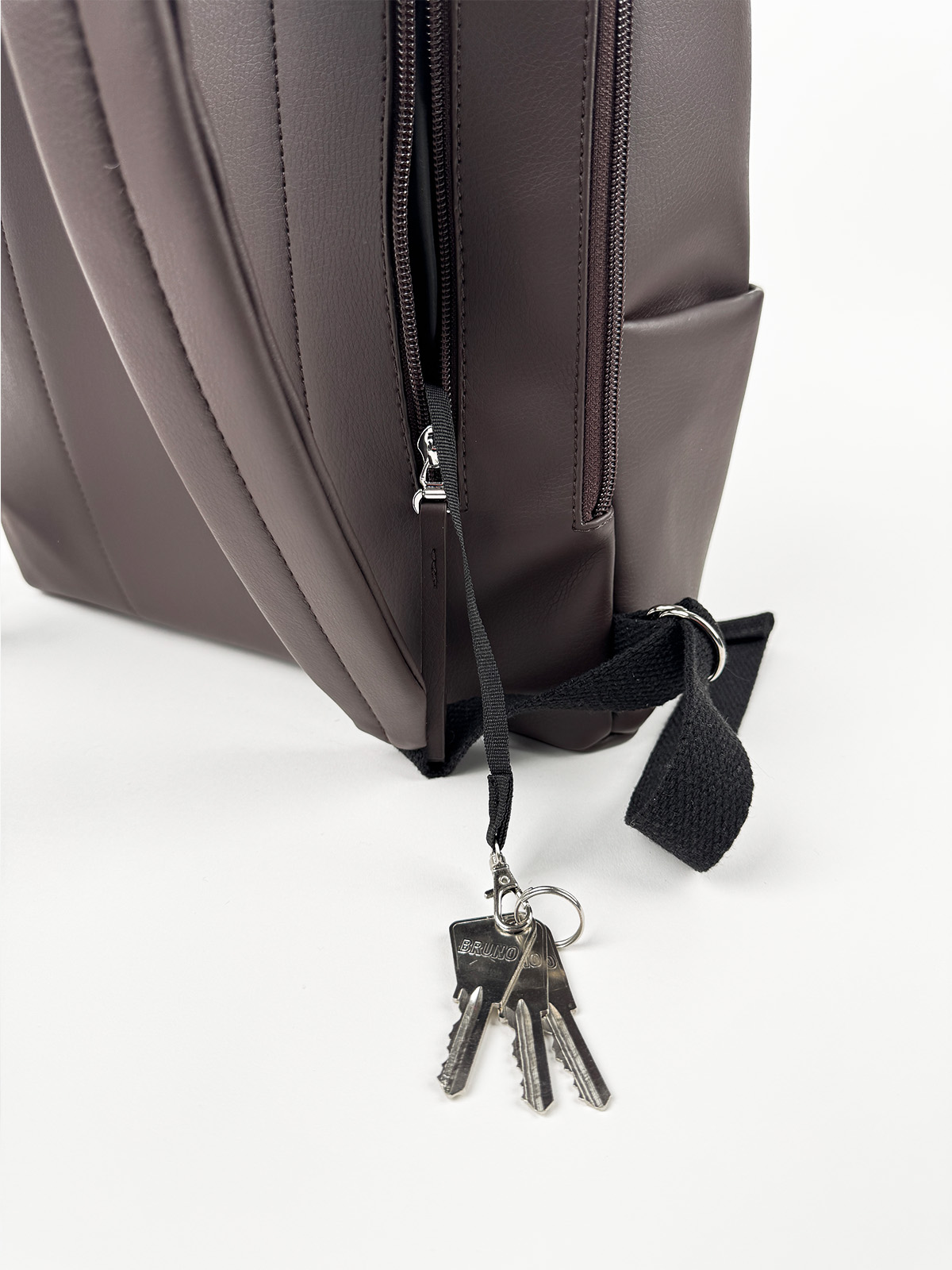 Кишеня на блискавці на задній стінці зі вшитою тасьмою з карабіном для ключів.