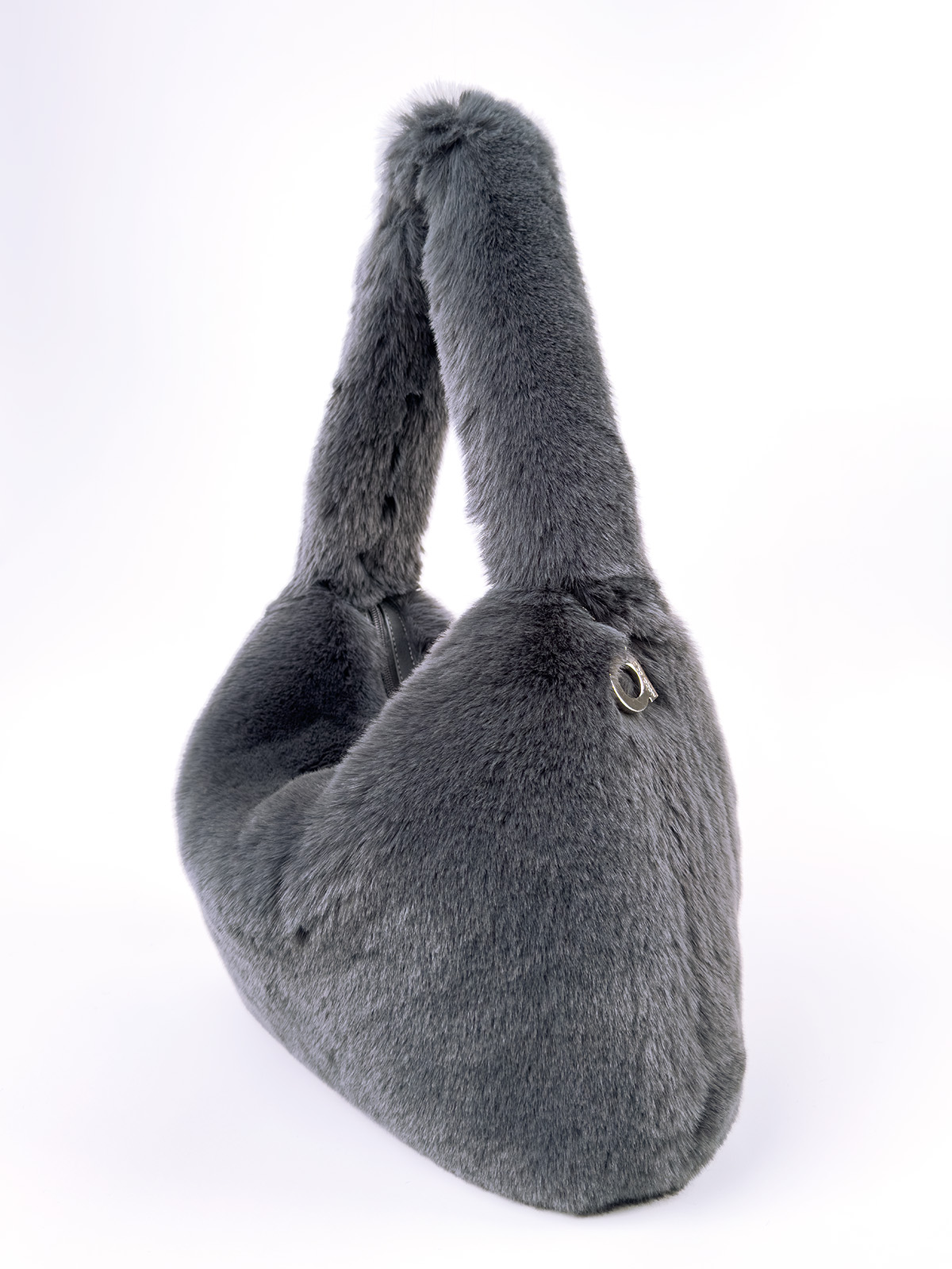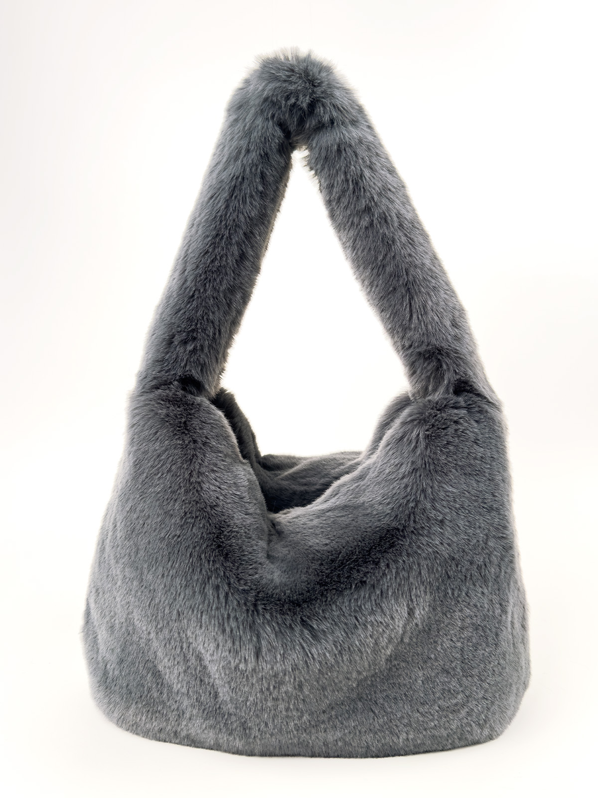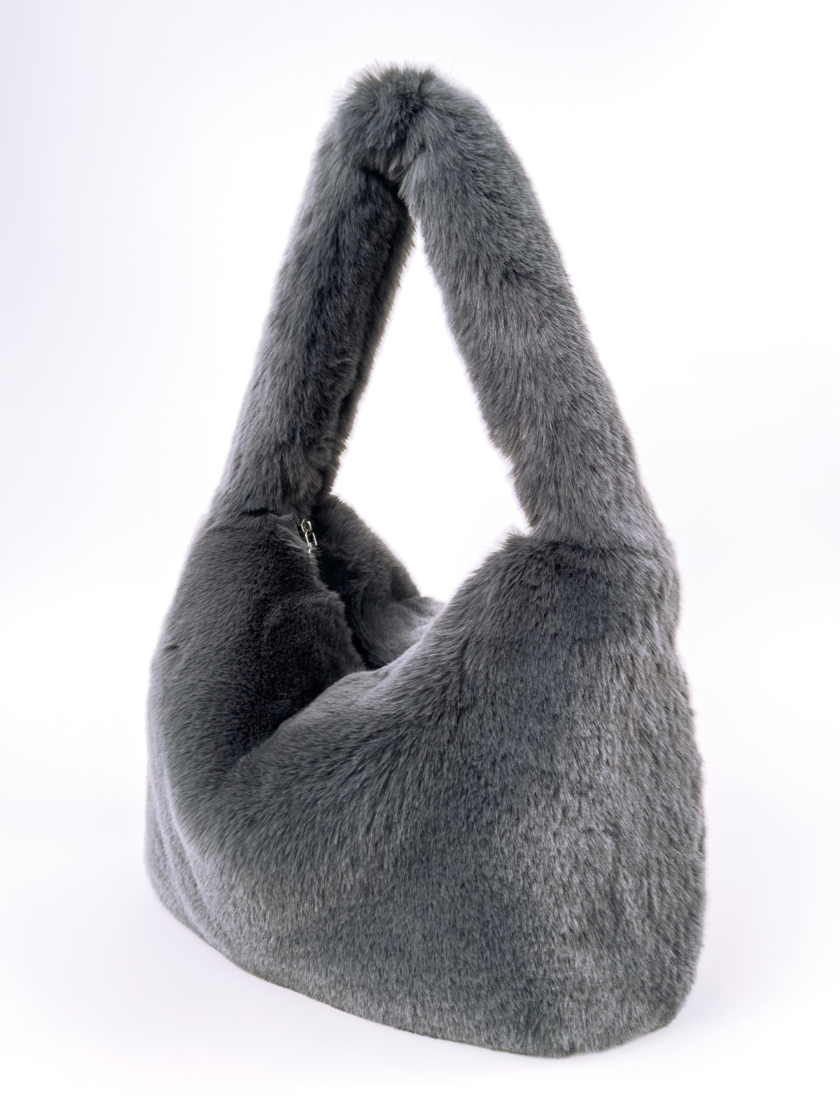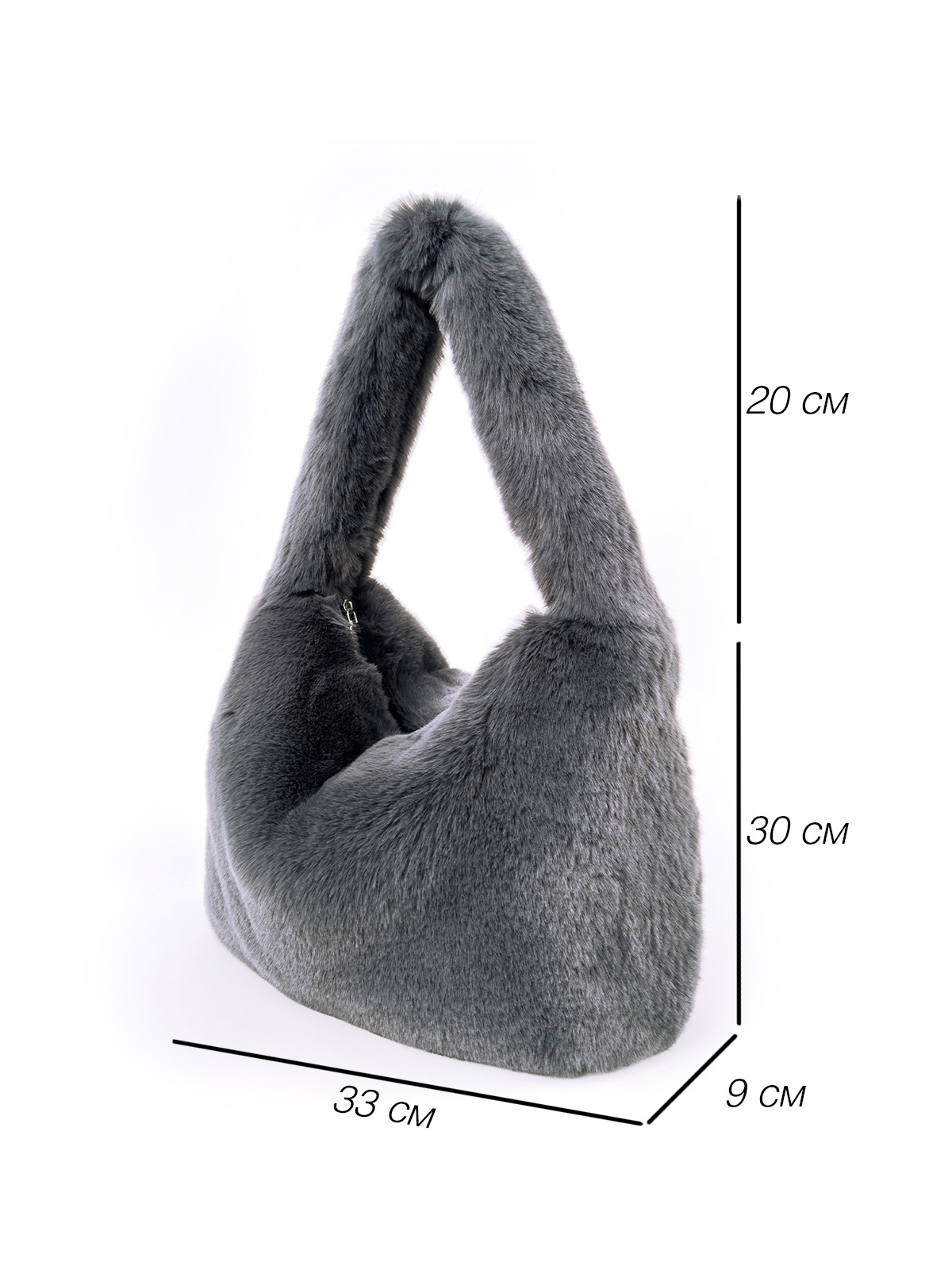 Стильна сумка з мякенького штучного хутра. Сумка закривається на блискаву. В середині має одне об'ємне відділення, дві відкриті кишені та потайну кишеню на блискавці.