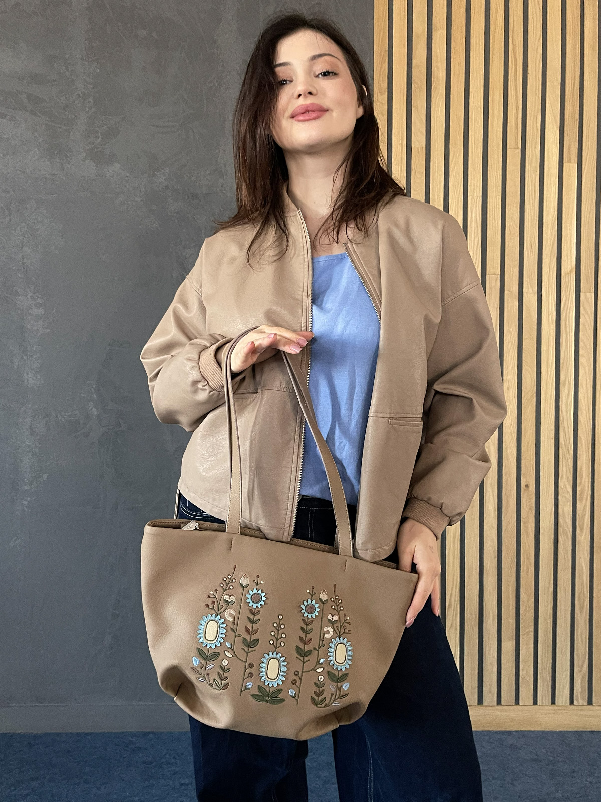 Жіноча сумка з двома нерегульованими ручками. Висота ручок - 31 см.