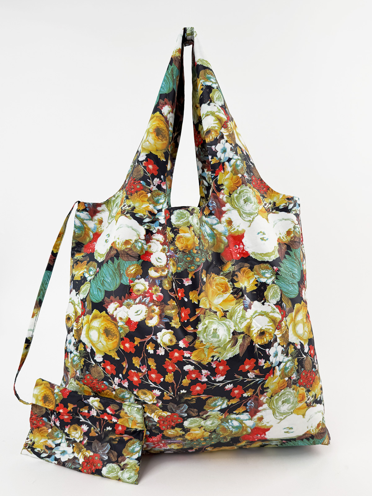 Шопер виготовлений із якісного текстилю з яскравим принтом і є чудовою альтернативою пластиковим пакетам. Він має одне містке відділення та зручну кишеню спереду для дрібниць. У комплекті передбачено компактний чохол, який дозволяє легко зберігати та брати шопер із собою.