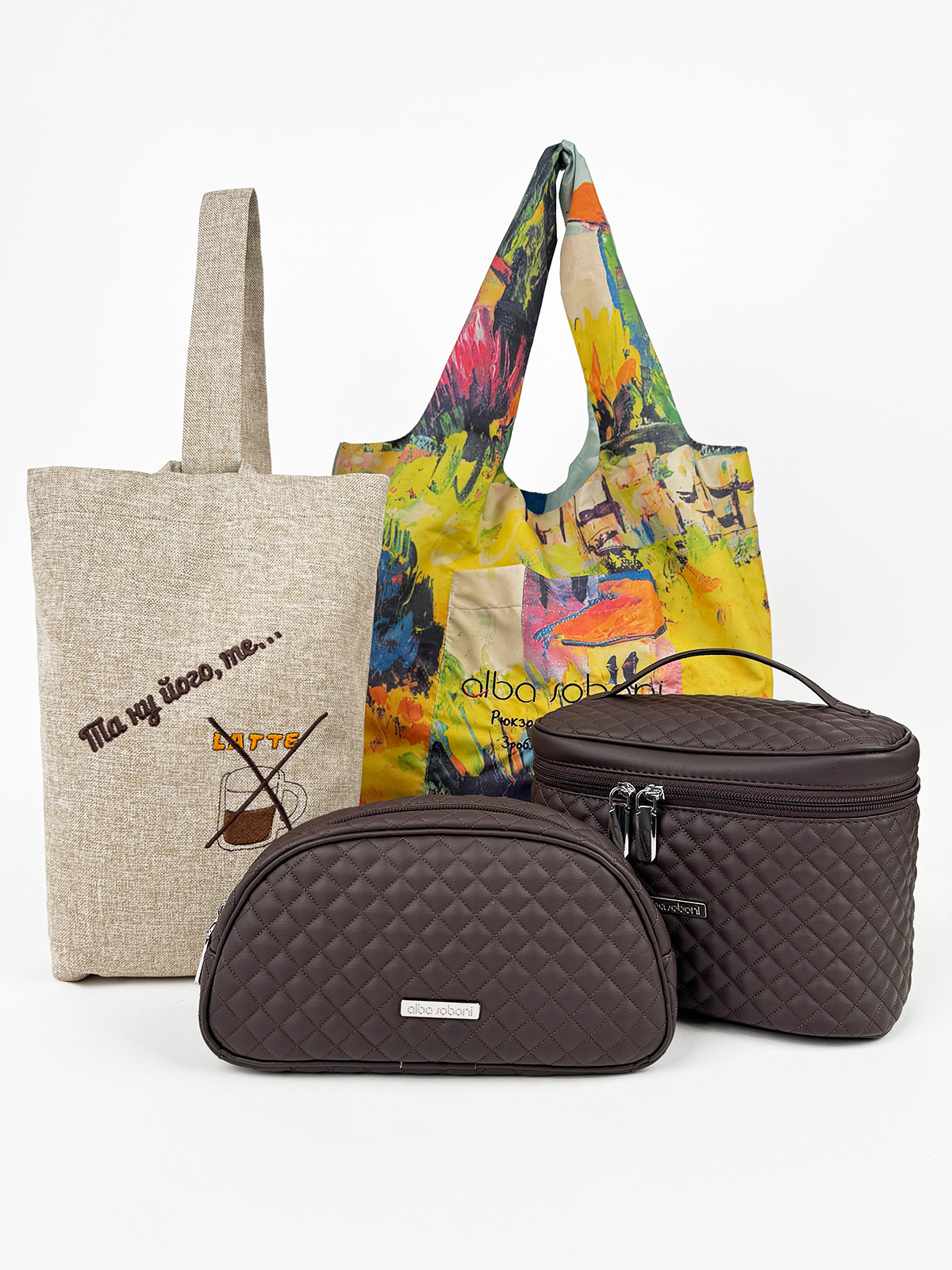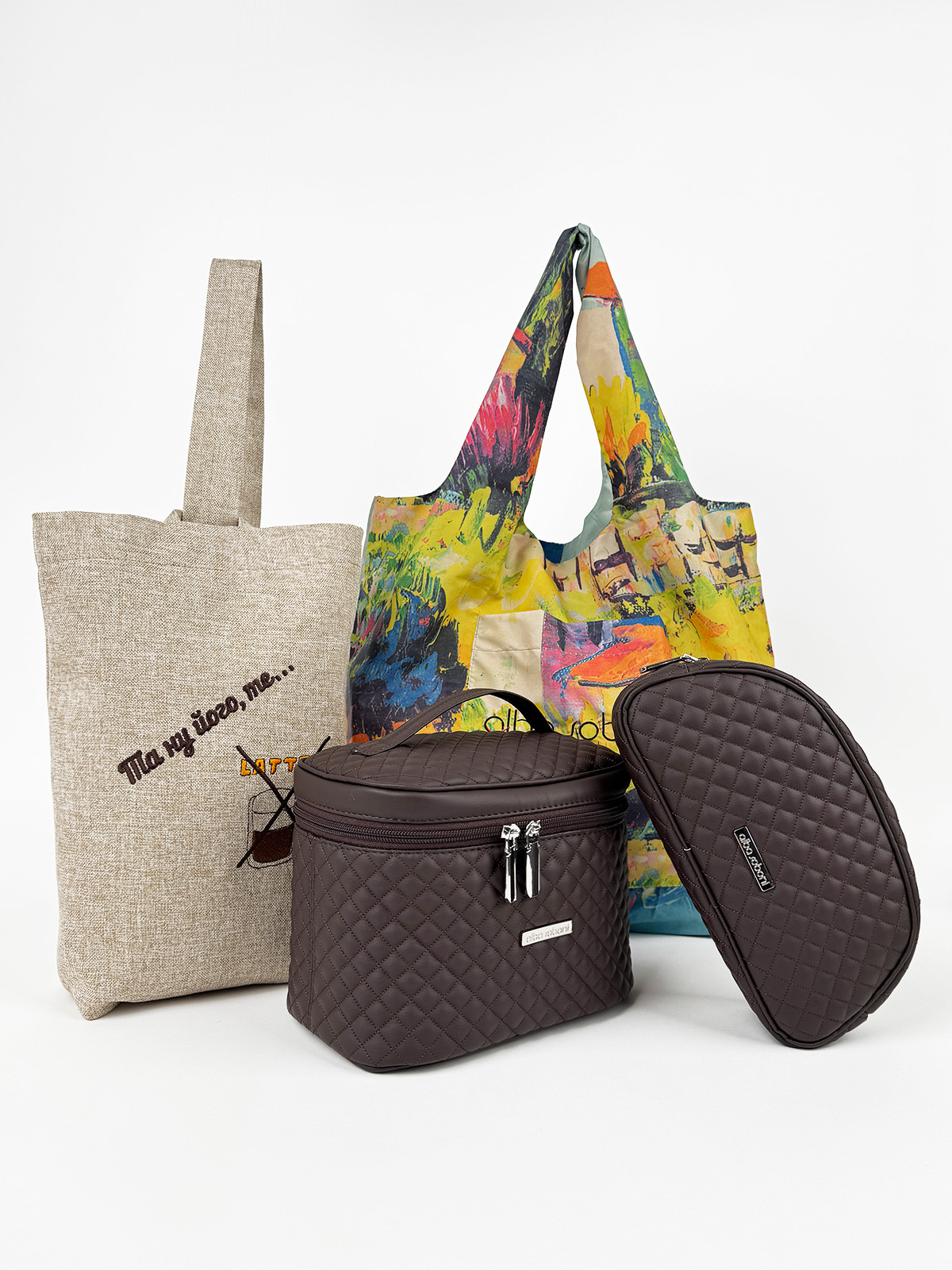 - Складові набору: wine bag, косметичка 1, косметичка 2, шопер