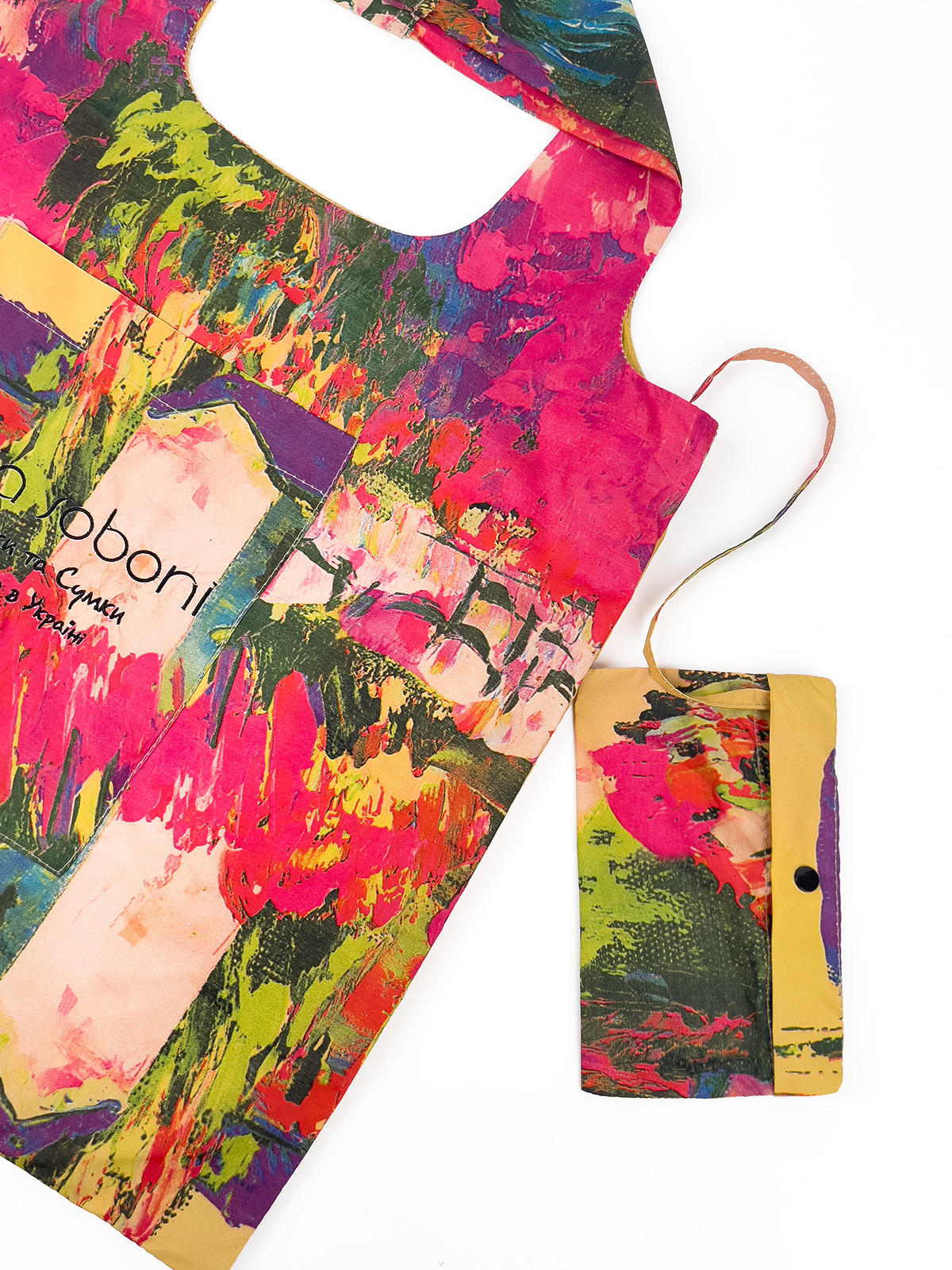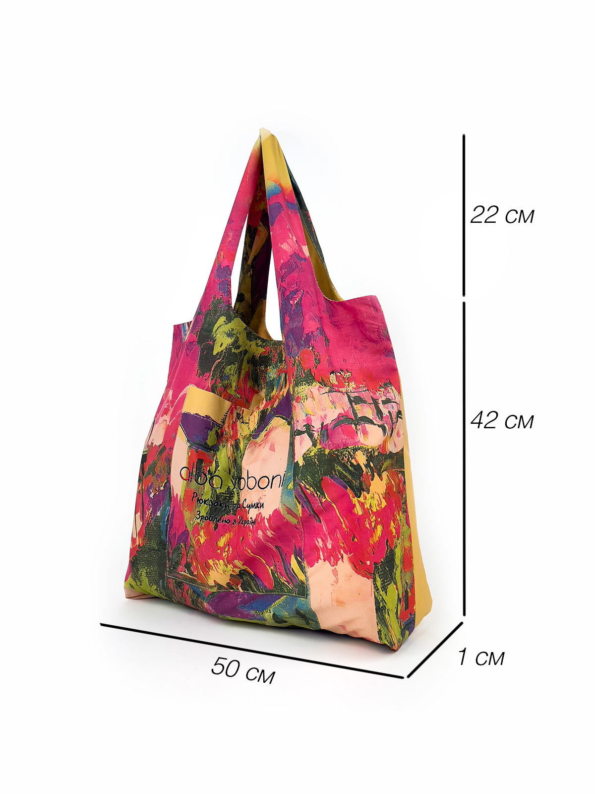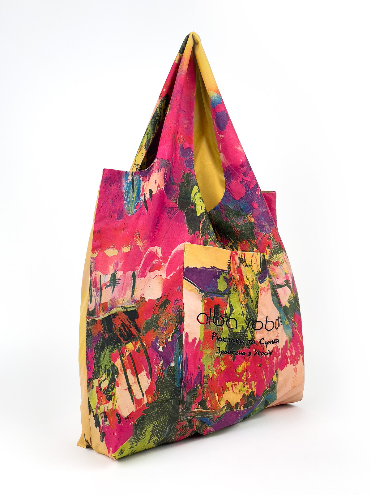 Легка та зручна сумка шопер виготовлена з якісного текстилю з яскравим принтом - альтернатива пластиковим пакетам. Усередині одне містке відділення, на передній стінці кишеня для дрібниць. Ідеально підходить для покупок. У комплекті - компактний чохол для зручного зберігання.